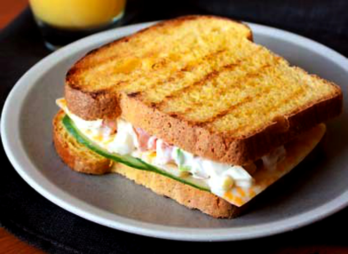 Сытные гренки с начинкой из ветчины и сыра — прекрасная идея для легкого утреннего перекуса. Просто выложите колбасу и сыр на кусочки тостерного хлеба, покройте начинку еще одним ломтиком хлеба. Получившийся сэндвич разрежьте на два треугольника, быстро обмакните каждый в заранее приготовленную и взбитую смесь из яйца и молока, обваляйте в сухарях и обжарьте на сковородке с двух сторон.