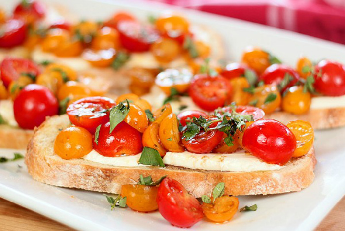 Хотите прикоснуться к итальянской кухне — приготовьте на завтрак теплую брускетту с сыром и помидорами. Для этого ломтики итальянского хлеба нужно смазать оливковым маслом и отправить в разогретую духовку на десять минут. В это время следует смешать прессованный чеснок с уксусом, оливковым маслом, измельченным базиликом перцем и солью, добавить в эту смесь порезанные помидоры черри. Разогретый хлеб следует достать из духовки, выложить на него кусочки Моцареллы, смесь с помидорами и вновь отправить в духовку на 7 минут.