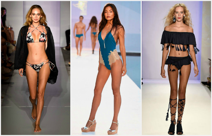 Тренд на одежду в бельевом стиле продолжает набирать обороты и в этом сезоне уже добрался до пляжной моды. Поэтому все любительницы красивого нижнего белья могут смело отправляться на поиски своего идеального купальника, выполненного из шелка, шифона и атласа, щедро декорированных кружевными вставками и оборками.