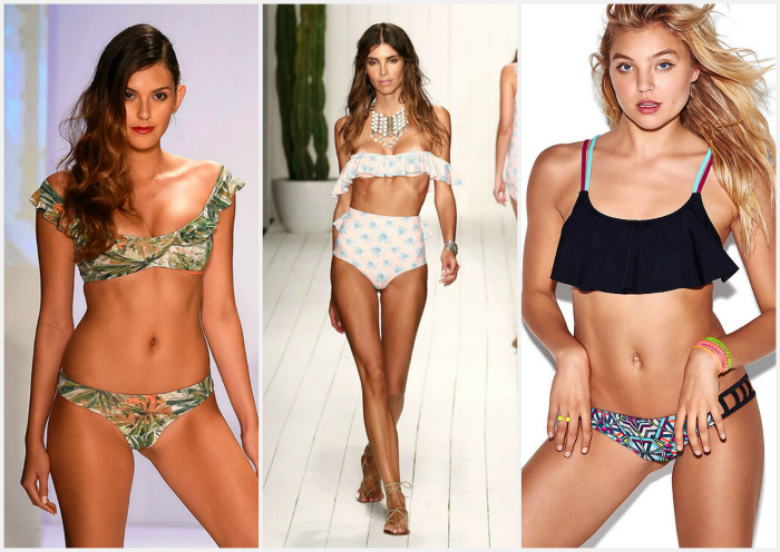 Воланы, оборки и рюши можно однозначно назвать самым романтичным и женственным трендом пляжной моды этого сезона. Причем в тренде, как совсем маленькие оборки, так и многослойные воланы, которые могут украшать, лифы, трусики или целые комплекты.