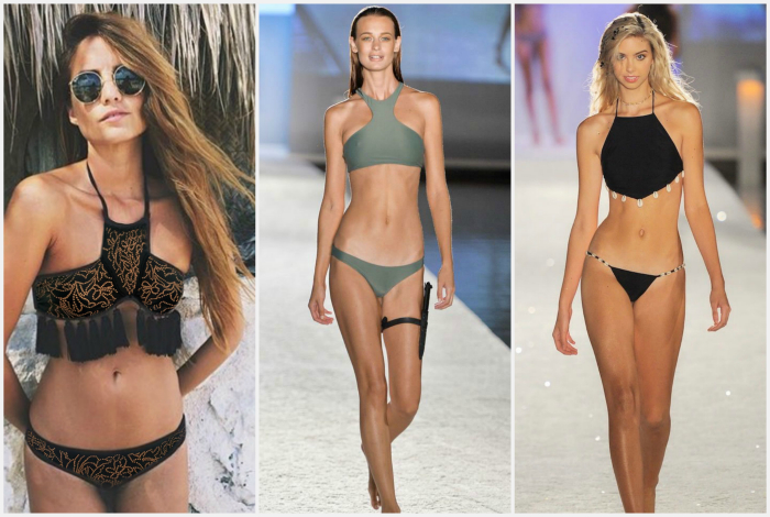 Для дерзких, смелых и сексуальных девушек дизайнеры подготовили сюрприз в виде огромного количества купальников, украшенных разнообразными ремешками и шнурками. В большинстве моделей эти декоративные элементы украшают зону декольте, талии или бедер.