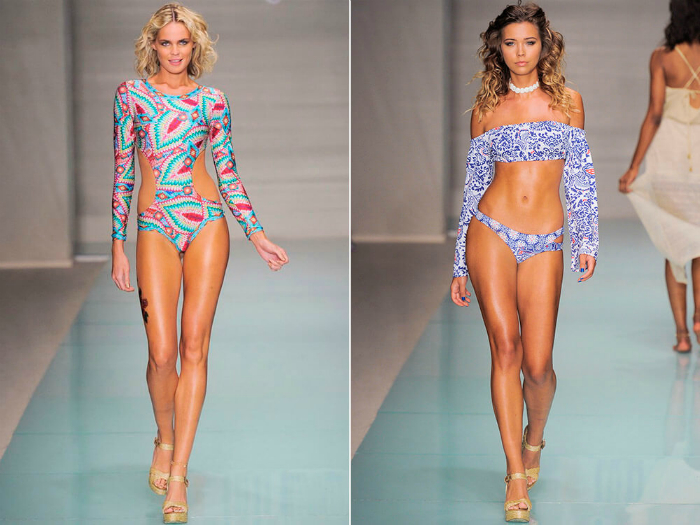 В противовес откровенным раздельным купальникам в моду ворвались модели с закрытыми рукавами, которые украшают не только классические сдельные купальники, но монокини, а также танкини. Самыми актуальными в этом сезоне будут модели с яркими принтами и приспущенными плечами.