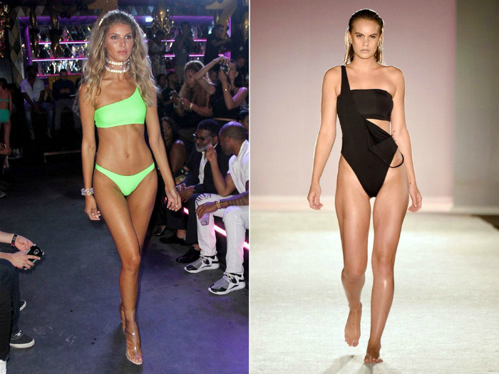 Асимметрия — один из неоспоримых трендов 2017 года, которая не обошла стороной и женские купальные костюмы. В коллекциях дизайнеров было представлено огромное количество сдельных и раздельных купальников на одно плечо. Некоторые модели купальников очень напоминают популярную модель бандо только более удобную и практичную так, как благодаря бретели можно быть уверенным, что лиф не соскользнет.