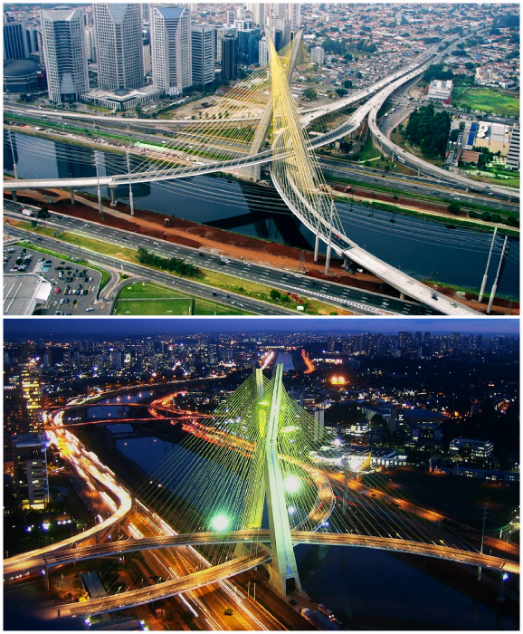 Вантовый мост «Октавио Фриас де Оливейра, расположенный в Сан-Пауло (Бразилия), является единственной в своем роде конструкцией с опорой в форме буквы «Х».