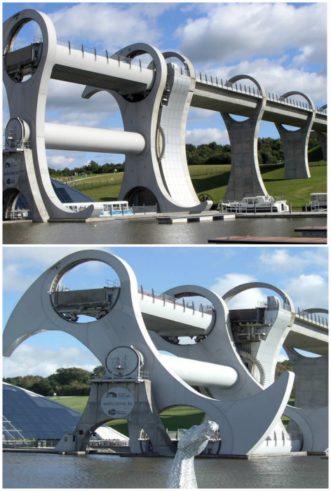 Необычный мост, который соединяет берега канала, расположенного рядом с городом Фолкирк. Особенностью данной конструкции стал единственный в мире вращающийся судоподъемник, именуемый Фолкеркское колесо. Этот мост способен за 5 минут переправить корабль на другую сторону канала.