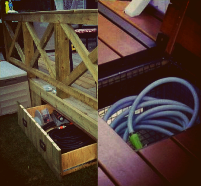 Подиум и пол веранды или крыльца можно оборудовать выдвижными и встроенными ящиками, которые подойдут для хранения самых разных вещей, начиная от садового инвентаря и заканчивая дорогостоящей техникой.