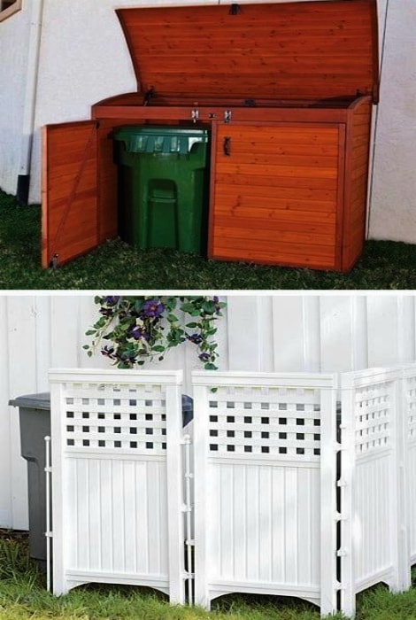 Деревянный контейнер или ширма помогут скрыть неприглядные мусорные контейнеры и тем самым улучшить внешний вид придомовой территории.