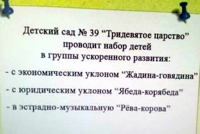 Как известно, у нашего человека «соображалка» функционирует на 100 процентов. Особенно если это касается объявлений, вывесок, табличек с предупреждающими надписями. Среди них встречаются такие перлы, что их потом забыть невозможно. В сегодняшнем юмористическом обзоре 17 душевных объявлений, которые заставят хохотать от души.
