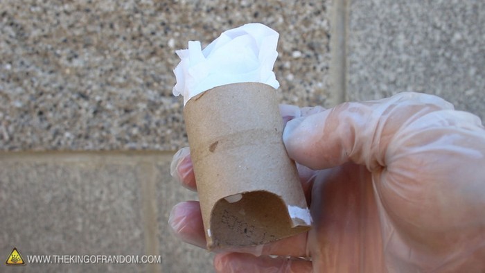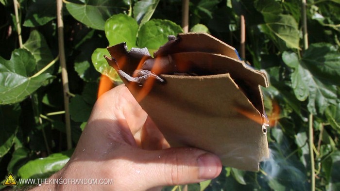 Картонная втулка от бумажного полотенца или туалетной бумаги тоже пригодится. Надрежьте её снизу, как показано на фото, а сверху набейте салфетками или другим легко воспламеняющемся материалом.