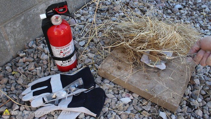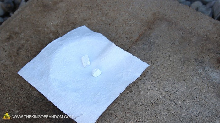 И напоследок – немного занимательной химии. Возьмите пластиковую крышку, застелите её фрагментом бумажного полотенца, а сверху положите несколько таблеток карбида кальция (carbide calcium, он же CaC2). Это – основа вашего огнива.