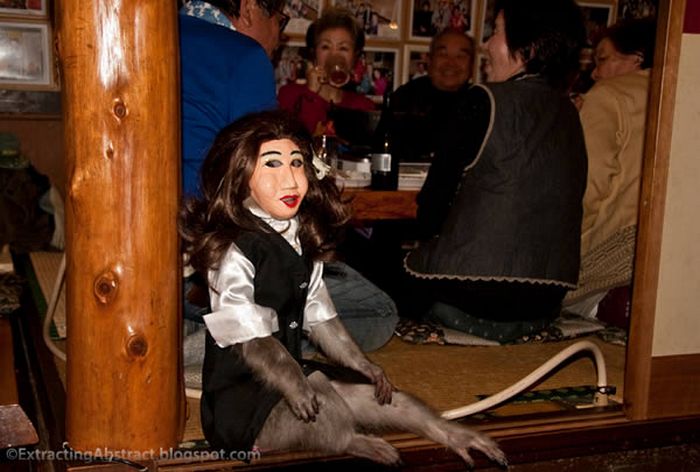 Заведение Kayabuki в городе Уцуномия (к северу от Токио) является традиционным саке-домом, но необычным его делает выбор персонала. Две обезьяны по именам Ят-чан и Фуку-чан работают официантами, принимая у посетителей бумажки с заказами и принося им выпивку. Фуку-чан также приносит посетителям горячее полотенце и помогает им вымыть руки перед обедом, как это принято в Японии.