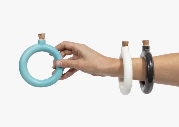 Bracelet Flask — идеальный аксессуар для тех, кто предпочитает всегда иметь под рукой глоток любимого напитка — для кого-то это сок, а для кого-то — французский коньяк. Так или иначе, но теперь для того чтобы всегда иметь под рукой спасительную дозу, совсем необязательно таскать с собой бутылку или фляжку. Можно просто залить спиртное (сок или газировку) в стильный браслет и закрыть его пробкой.