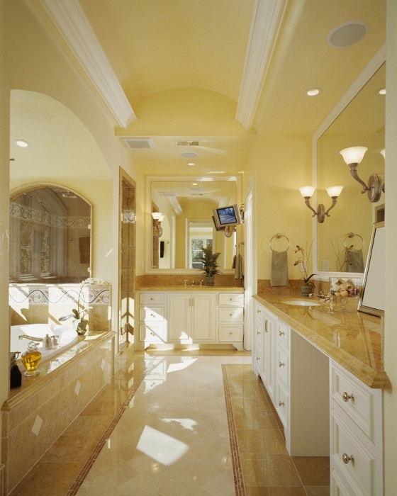 Отменный интерьер в нежно-кремовых тонах, что понравится и облагородит любую ванную комнату.