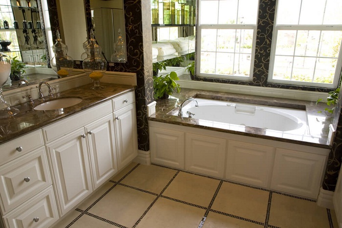 Отличное решение создать удачный интерьер в ванной комнате с помощью добавления коричневых оттенков.
