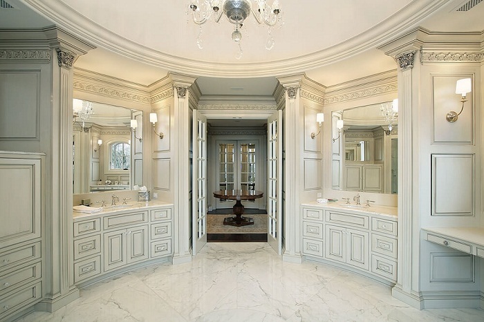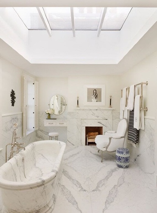 Интересный интерьер, который выполнен в мраморном исполнении, что выглядит весьма богато.