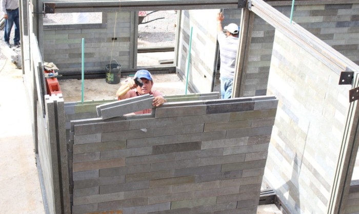 Более того, Льянос и Мендес решили использовать не новый пластик, а уже бывший в употреблении. В местные заводы по переработке пластика ежедневно поступают тонны этого материала. Пластик расплавляют, добавляют туда вещества, снижающие его горючесть, а затем прессуют в необходимые формы. Масса одного такого кирпича составляет 3 кг.