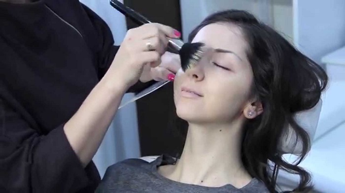 Для того, чтобы закрепить эффект, нужно воспользоваться пудрой. Но здесь есть один важный нюанс: нужно использовать только рассыпчатую пудру. Она легко ложиться на кожу и не создает «маску». Лучше всего отдать предпочтение прозрачной пудре. Для идеального нанесения нужно использовать самую большую кисть, предварительно стряхнув излишки продукта, чтобы не перегружать кожу.
