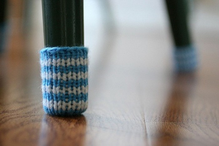 Эта необычная идея наверняка понравится рукодельницам и любителям всего необычного. Стулья и стол в вязаных носочках – вот так точно оригинальный декор, на изготовления которого потребуется буквально несколько часов. Он удивит не только ваших гостей, но и домочадцев. Использовать такие уютные украшения можно и после Нового года до конца холодного сезона.