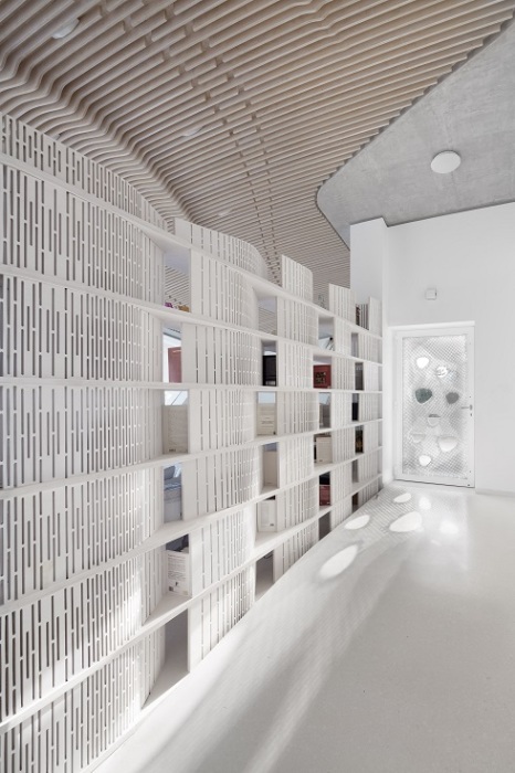 Необычный дизайн дома разрабатывался таким образом, чтобы палящие лучи солнца проникали внутрь только до полудня. Перфорированная стена с одной из сторон дома также эффективно защищает пространство от чрезмерного нагревания.