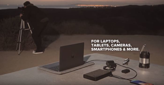 Аккумулятор не занимает много места и легко помещается даже в сумке скромных размеров. В его конструкции предусмотрено несколько портов, в том числе розетка для подключения ноутбука. Можно заряжать от станции несколько устройств одновременно. Емкость аккумулятора в 22 тысячи даст в среднем еще 15 часов работы компьютеру. Дополнительные порты представлены USB-C и USB-A с функцией быстрой зарядки. Использовать новинку можно и для работы с любой другой автономной крупной техникой.