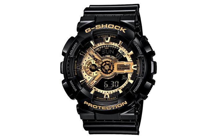 Модель с невероятно роскошным дизайном, во всяком случае, для G-Shock. Как и описанный выше вариант, часы оборудованы корпусом выдерживающим погружение в воду на глубину до 200 метров. Он также защищает часы от магнетизма. В часах есть и небольшой цифровой дисплей. Есть в часах и будильник, таймер, обратный отсчет и многое другое!